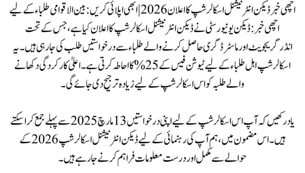 Good News Deakin International Scholarship Announce 2026 | Apply Now: Good news for international students: Deakin University has announced the Deakin International Scholarship, under which applications are being invited from students pursuing undergraduate and master’s degrees. This scholarship covers 25% of the tuition fee for eligible students. Students who show high performance will be given more preference for this scholarship.